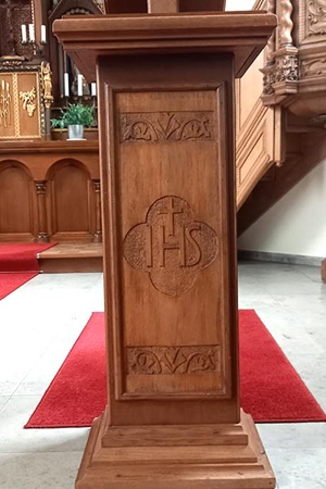 Drei lebensgroße Statuen des Hl. Josef der Gottesmutter Maria und eine Herz-Jesu-Figur schmücken den Altarraum. Der Hochaltar stammt aus dem Jahre 1875. Dort befinden sich die Figuren des hl. Ludgerus und des hl. Georg. Das alte Standkreuz im Chorraum stammt aus dem Mittelalter.