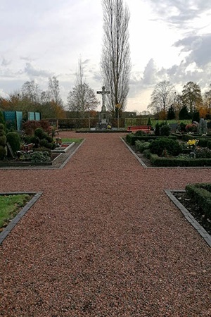 Der Gemeindefriedhof ist ein Ort des Gedenken, der Trauer, der Besinnung und der Einkehr. Er liegt an der Deichstraße direkt am Ortseingang. Er ist in unmittelbarer Nähe zum Friedhof der evangelischen Kirchengemeinde.