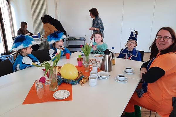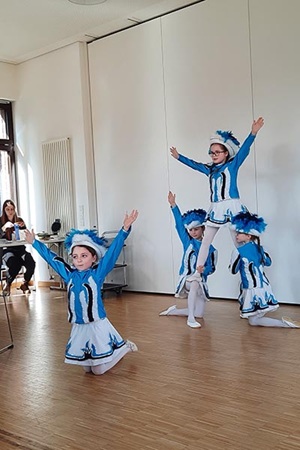 Mit dieser gemeinsamen Freude wurde auch sofort nach der Messe weitergefeiert. Das Prinzenpaar hatte zu Waffeln, Kuchen, Saft und Kaffee ins Pfarrheim eingeladen, wo die Minigarde die Anwesenden mit einer Tanzdarbietung unterhielt.