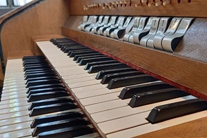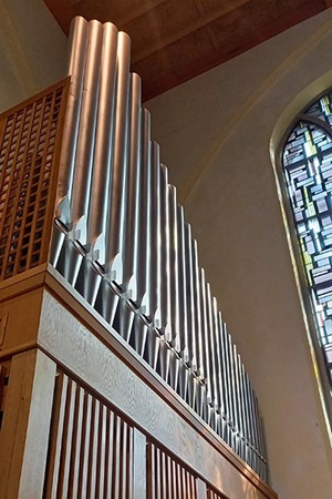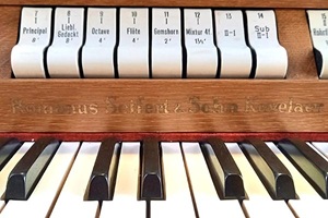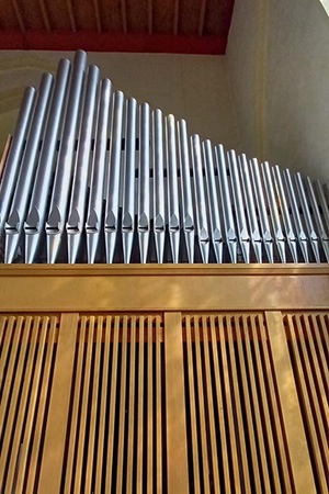 | I. Hauptwerk C - g''' 1. Principal 2. Liebl. Gedackt 3. Oktave 4. Flöte 5. Gemshorn 6. Mixtur 4fach II. Unterwerk C - g''' 7. Rohrflöte 8. Oktave 9. Blockflöte 10. Principal 11. Quinte 12. Dulcian Pedal C -f' 13. Subbaß 14. Gedackt | 8' 8' 4' 4' 2' 1 1/3' 8' 4' 4' 2' 1 1/3' 8' 16' 8' |