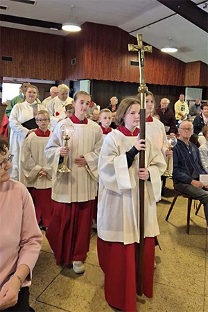 Während des Gottesdienstes feierten die Kindergartenkinder parallel eine eigene Kinderkirche, liebevoll gestaltet und geleitet von Andrea Michels, der Verbundleitung der drei Kitas unserer Pfarrei. Die Kinder sangen, hörten vom Leben des heiligen Franziskus und feierten mit großer Begeisterung ihren eigenen Beitrag zum Erntedankfest.