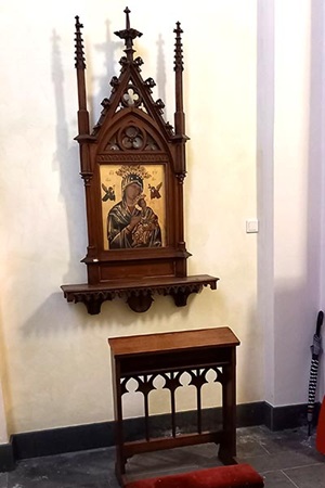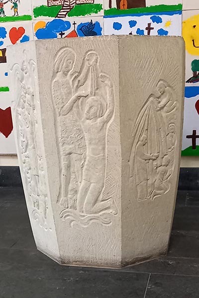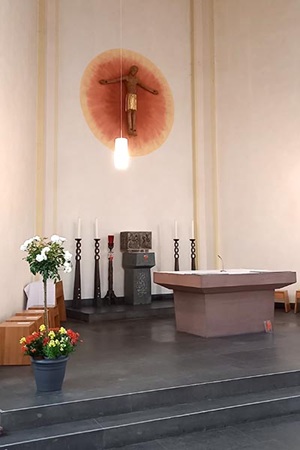 Zur Ausstattung gehören die Figuren des Heiligen Johannes und der Maria aus Eiche von einer niederrheinischen Kreuzigungsgruppe aus der Zeit um 1500. Die Figuren sind nicht gefasst. Das Kruzifix ist wohl aus dem 16. Jahrhundert. Ein Taufstein aus neuerer Zeit zeigt Motive der christlichen Tauftheologie.