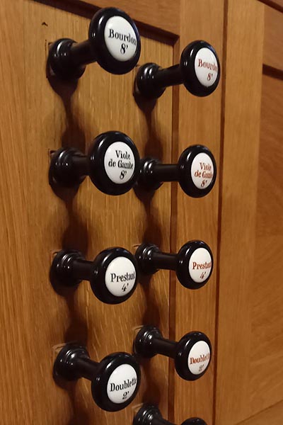 Manual C . g''' 1. Bourdon 2. Viole de Gambe 3. Prestant 4. Doublette 5. Larigot Pedal C - f' 6. Soubasse | 8' 8' 4' 2' 1 1/3' 16' |