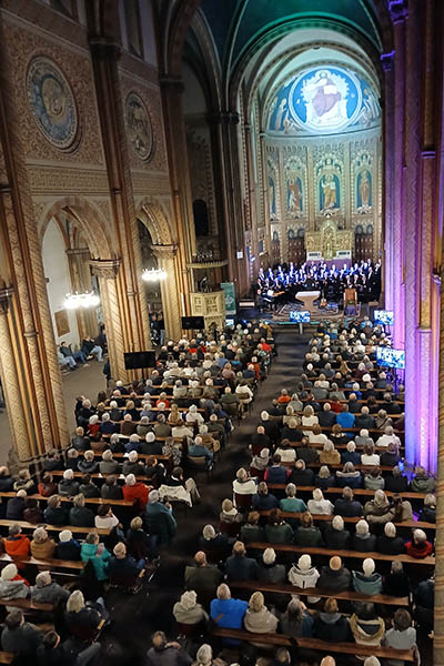 Die eindrucksvolle Beleuchtung der Kirche trug zusätzlich zur festlichen Stimmung bei und verwandelte den Raum in eine stimmungsvolle Kulisse für dieses großartige Konzert. Die Begeisterung der Besucher war spürbar – von den ersten Tönen bis zum letzten Applaus war die Kirche erfüllt von Freude und Anerkennung für die Darbietungen.