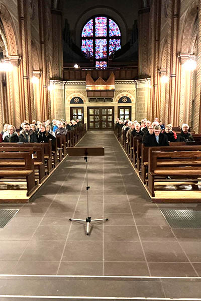 "Herr Zangerle, unsere Freude war riesengroß, Sie zu hören. Liebe Sängerinnen und Sänger des Kammerchores aus Xanten: Sie haben diese Kirche voll mit Ihren Stimmen ausgefüllt. Und dafür gilt Ihnen unsere Bewunderung", befand Antje Jolink am Schluss. Die über 70 Besucherinnen und Besucher waren der gleichen Meinung und spendeten langen Applaus für ein grandioses Konzert.