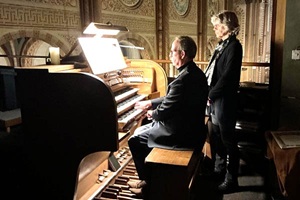 In Hans Zimmers "The Da Vinci Code-Sakrileg" in der Bearbeitung von Anna Lapwood kam der orchestrale Orgelklang besonders zum Tragen. Zangerle spielte konzentriert-eindringlich; ein beeindruckender Klangteppich schwebte durch den Raum. Vom sanften Piano bis zum kräftigen Forte steigerte er sich, um zum Schluss scheinbar ins Nichts zu verschwinden.